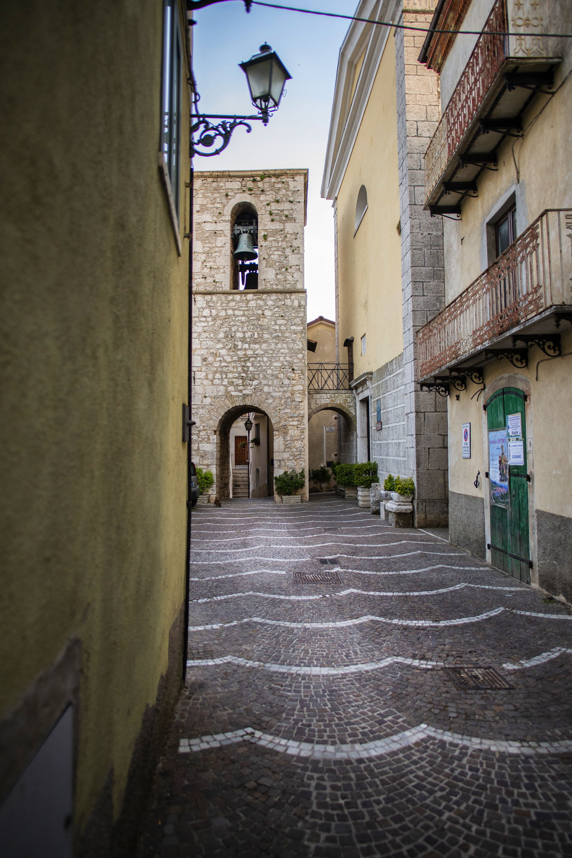 Al termine di piazza Colonna, improvvisa, si erge la torre campanaria con la sua massiccia struttura architettonica simile alla torre campanaria della Cattedrale di Isernia. E’ di forma quadrangolare e risale al 1500. E’ divisa in due piani: al primo si accede attraverso la scala interna alla chiesa parrocchiale; al secondo piano, in quattro grandi aperture ad arco, sono sistemate altrettante campane di cui la più grande ha il peso di tredici quintali. Dalla facciata della torre che guarda il massiccio del Matese, a coronamento dell’arco a tutto sesto, fuoriescono dalle mura tre teste di animali scolpite in pietra dura del luogo. Poste una a destra, una a sinistra e l’altra al centro, somigliano a teste di leoni che, con aria minacciosa, vogliono incutere timore a chi si accinge a varcare l’arco medievale.